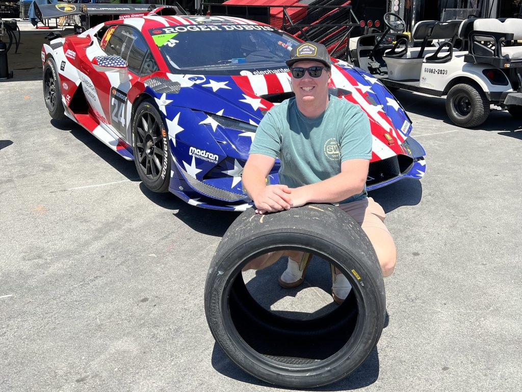 I moved around the circuit every 10-15 minutes or so. Having been familiar with the layout before getting there, I was interested in seeing the racing from all vantage points. I found myself near the paddock again and decided to do one final walkthrough before I was going to head out. I tried to skip out early of the race since I had a 6 hour drive ahead of me. As I made my way back through the paddock, all of the Lamborghini’s were on display. Previously, they were queued up for the race so I missed them. As I was snapping a picture of one, a mechanic tapped me on the shoulder and asked if I wanted a souvenir. “Hell yeah!” was the only response I could muster. He handed me a Hankook slick from a pile of race worn tires used that day. I couldn’t resist snagging a piece of the action – quite literally. I got to go home with a piece of the race, not just photos to remember the day. Insert cheesy smile again.