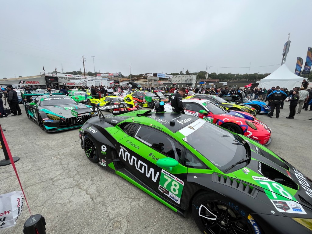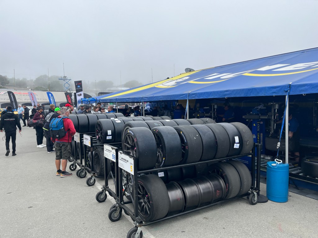 I shook off my emotions and made my way to the paddock. The fog had finally lifted and I could actually see where I was going. Because of the delays due to the fog, the organizers opened the paddock early. I wasn’t going to miss my chance to get up close and personal with these cars. At this point, ISMA racing is new to me. I didn’t know what to expect but I wanted to find out. I quickly realized that the main event wasn’t the only race happening at the circuit. In addition to the WeatherTech Sports Car Championship, we were greeted with Mazda MX-5 Cup and Lamborghini Super Trofeo Series. All of which had competitors and mechanic scattered across the paddock. It was race day so any last minute preparations were in full swing. Having only previous attended Formula 1 races, this was mind-blowing to me. I was mere feet from world class multi-million dollar race cars. I was genuinely surprised at the level of access I had. There was so much to see with the majority of teams having their garage areas open for viewing. I even spent some time watching the team at Michelin changing tires for all of the teams.