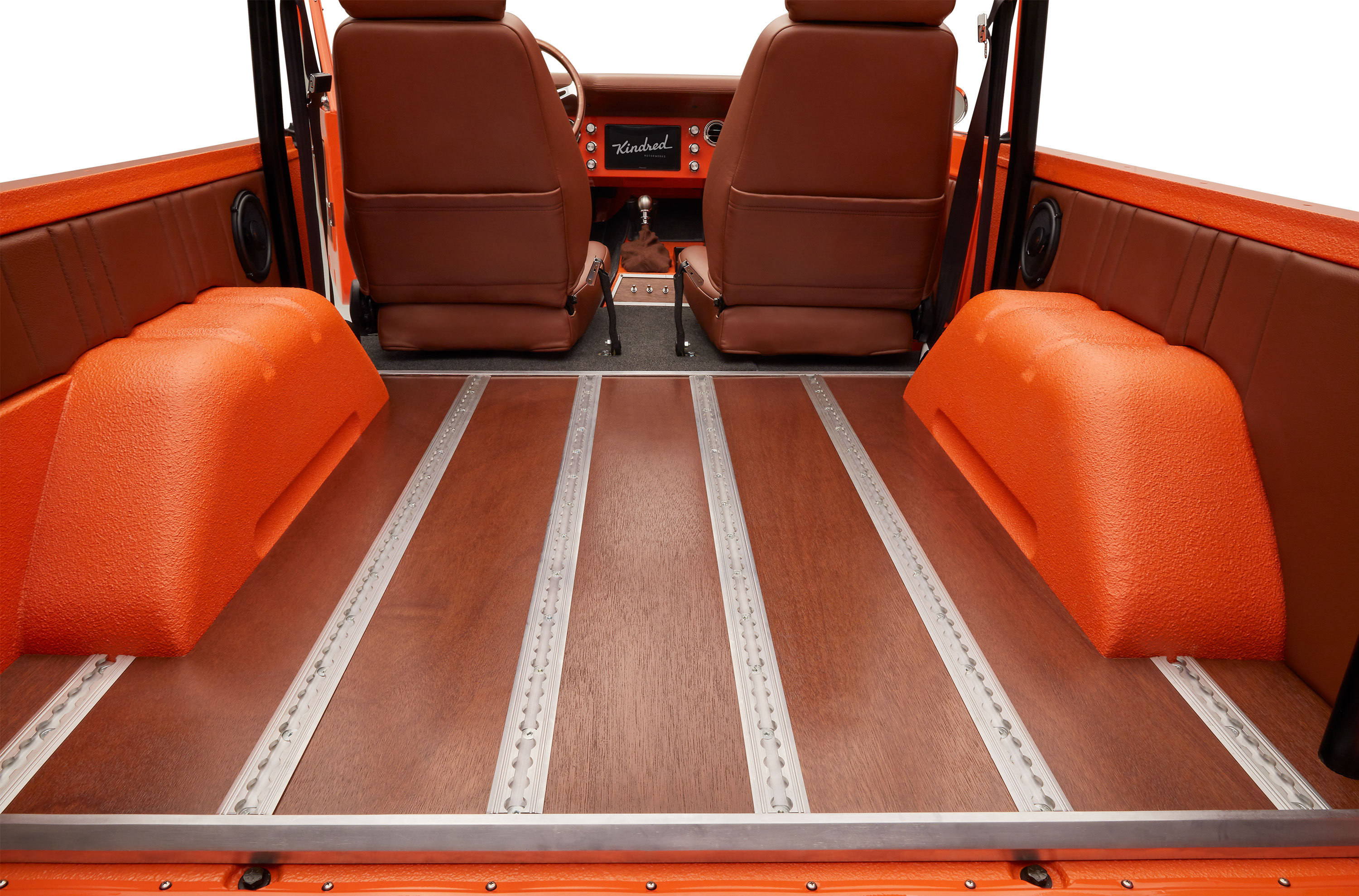 In order to understand what makes Kindred so cool, we need to dive into their Ford Bronco model. Giving Singer Porsche vibes, the car is built inhouse from the ground up. It’s not a simple refresh with some new paint. Every nook and cranny of the car has been cleaned, modified, and perfected. A fresh, clean and modern interior the best part as it shows off what’s possible. With older cars, you expect them to be, well, old. With the modernization Kindred is doing, the Bronco interior looks much closer so something rolling off the current Ford production line than a reproduction. With looks and comfort checked off the list, Kindred decided to modernize the drivetrain as well. Firstly, front and rear disc brakes are a massive upgrade to the Bronco. Modern car braking performance isn’t even worth comparing to what the stock standard cars had from the 60s and 70s. But they will definitely be needed as the best part of this retro build is the Kindred Bronco has a 46-hp Gen 3 Coyote V8 hiding underneath the hood. Giving an old Bronco current Mustang performance is the kind of lunacy I can get behind. For more details on the specs, check out the Spec Sheet.