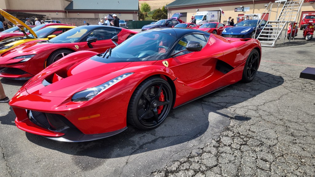 Beyond the racing, the event also featured a paddock area that could easily rival any high-end cars and coffee gathering. Here, client cars were displayed in a mini Ferrari museum of sorts, with everything from classic models to modern hypercars on show. The paddock was a sea of red, yellow, and the occasional black, each car meticulously maintained and gleaming in the California sun. Among the rarest gems were multiple LaFerrari’s and a Daytona Spider, all of which were attracting crowds eager to get up close to these automotive icons. This paddock was more than just a display—it was a celebration of Ferrari’s rich heritage and the passionate community that keeps it alive. It was worth the price of admission on its own.