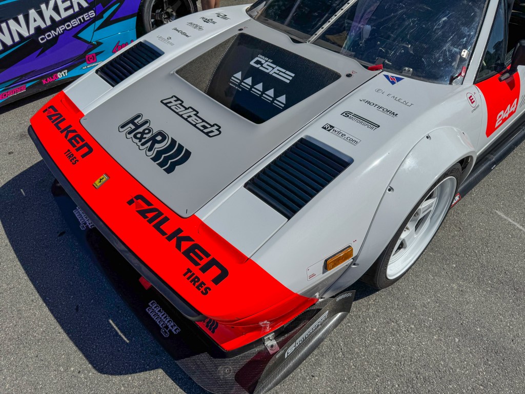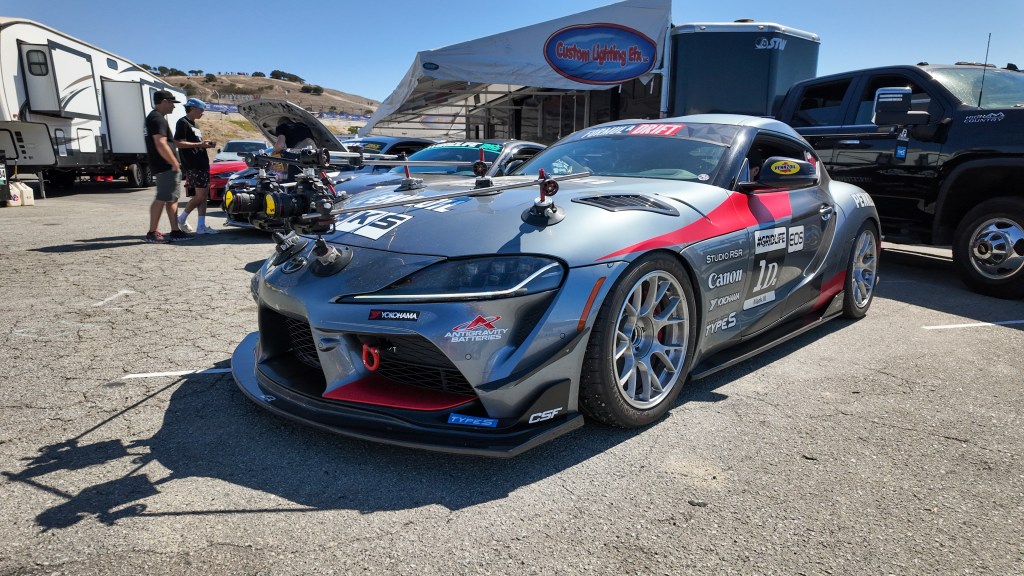 After spending a couple hours pursuing the paddock, we found some spots near the track fencing and hung out for a while watching the various sessions go by. Due to Laguna’s open policy, we were able to walk around with a full cooler and some chairs. Anywhere you can find is open for you to hang so that’s exactly what we did. Without a timeline or the pressures of only being there one day, we took it easy and went with the flow of the event. Hanging around turn 4 before eventually making it up to The Corkscrew and just in time for the drifting action to start. Tandem drifting is already awesome, but getting to see it at The Corkscrew was unreal. So much smoke and bumpers ripping off, all just for an epic photo shot. Drifters are insane and the world needs them to be. The drifting session felt like a party in itself, drawing massive crowds and providing non-stop action whenever they were out of circuit. FCPEuro was the star of the drift show for me with their two project drift cars, one a LS-swapped Porsche Cayenne and the other a RWD converted VR6-swapped Audi RS5. Both cars were absolutely insane in quality and performance, I had missed them in the paddock earlier so had to make a mental note to go back and see them. After a full day in the sun, we headed back to the trailer for some beers and burgers before calling it a night, but not before doing some laps in Gran Turismo 7 as we may or may not have brought a PS5. Definitely not real camping, but it was a freaking blast.