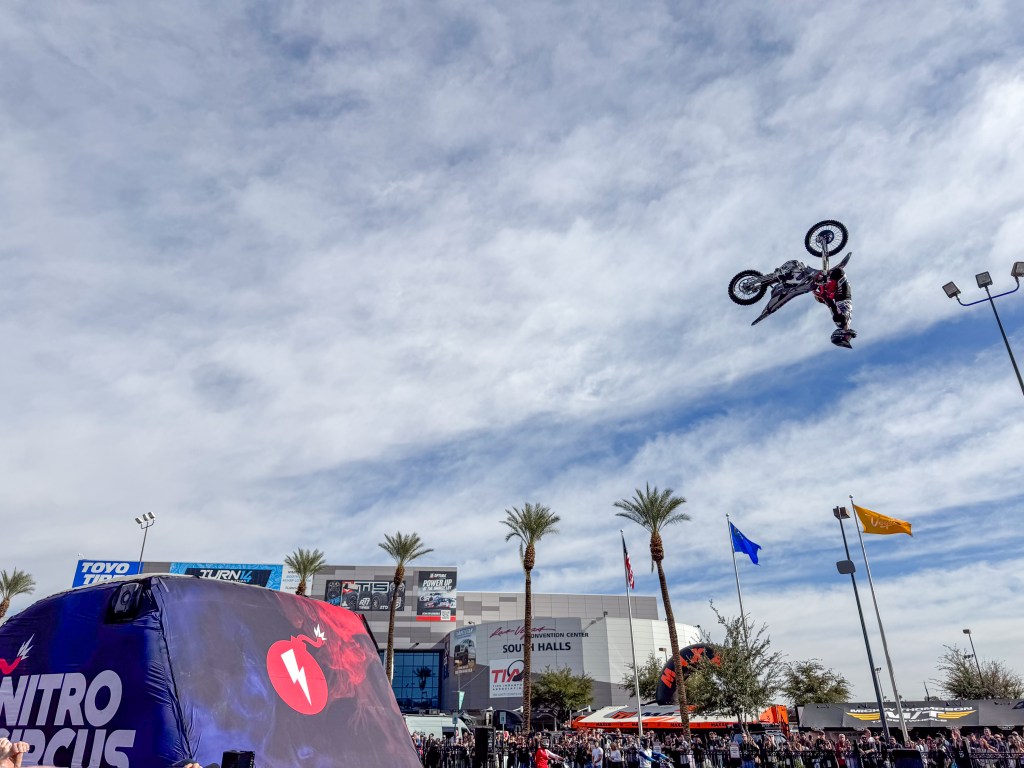 And then, there was Nitro Circus. The insane and seemingly immortal team did some solo stunts then transitioned into multi-rider tandem stunts with backflips and no-handed landings. Seemed more like a video game than real life. Seeing these daredevils perform gravity-defying stunts on dirt bikes was a reminder that SEMA is about pushing boundaries—not just in terms of car builds, but in terms of experiences and excitement. The stunts, the speed, the precision—it all added to the adrenaline-charged atmosphere that makes SEMA such a staple in the automotive world. The image above was my favorite on the day by far. It really showcased the insane level of what SEMA really is. The Mecca for automotive culture.