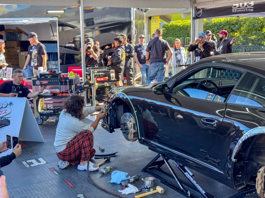 The outdoor section of SEMA is where things were the craziest. Here, you’ll find live demos, stunts, and interactive experiences that give you a hands-on taste of the automotive world. One of the highlights for me was watching a Akira Nakai cut up a Porsche 996 with an air saw. The man behind RWB was there live in person building one of his now infamous widebody kits. It was fascinating to see the level of skill and precision that goes into something like this. I was impressed with the amount of buzz he generated as well with people waiting 20+ minutes just to get close enough to see the master at work.