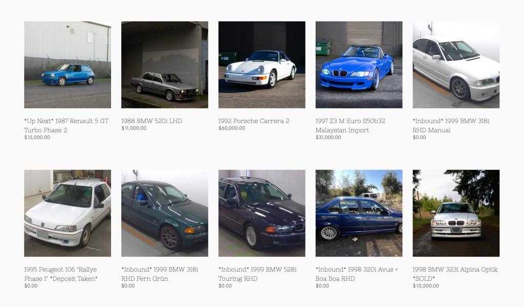 Stepping into their shop is like walking through a living museum of cars that never made it to U.S. soil. While it was very BMW heavy (not complaining) while I was there, the shop is normally full of a range of cars. Poor timing on my part meant there were around 5 cars in transit to the shop so I just missed out. But normally it’s a sea of rare BMW touring models, air-cooled Porsches, and impeccable French hatchbacks you’ve only seen on TopGear reruns. Their attention to detail is sharp, and their inventory isn’t just curated, it’s chosen with purpose. Anything of interest or rarity is on the list for them. Below is a shot of some of their current offerings as of when this was posted.