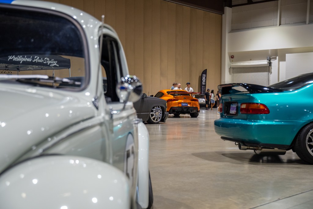 The venue was simple, open, industrial, and flexible. Hosted at the Reno Sparks Convention Center, It didn’t need a ton of fancy signage or valet parking. It had enough character with its attendees. Cars rolled in early, some scraping, some with screaming V10s, some just cruising sunder the radar. From the jump, it was clear this wasn’t just a “pop the hood and sit in a lawn chair” kind of show. It was intentional. Every layout choice, every vendor booth, every musical cue felt dialed. There were specialty auto shops, toy car resellers, local vendors, and even an on site screen printing company making event shirts. But none of it distracted from the cars, it elevated them.