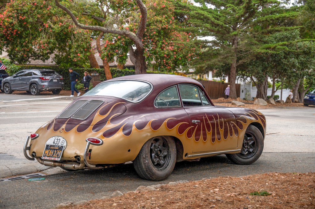 The best strategy is to simply walk the main streets and keep your eyes open. Ocean Avenue, Dolores Street, and the area around Carmel Plaza tend to have the highest concentration of interesting metal. Don’t just look for the obvious exotics, either. Some of the most interesting cars are the subtle ones that knowledgeable collectors prefer, like this 356 someone painted brown, then put flames on it. Not necessarily my style, but respect for doing this to a 356. Since this “event” is lucky by nature, there really isn’t a best time to go, but I would advise going when there isn’t another major event going on. A lot of these cars are on display at places like The Quail so going when there isn’t an event increases your chances of seeing something cool.