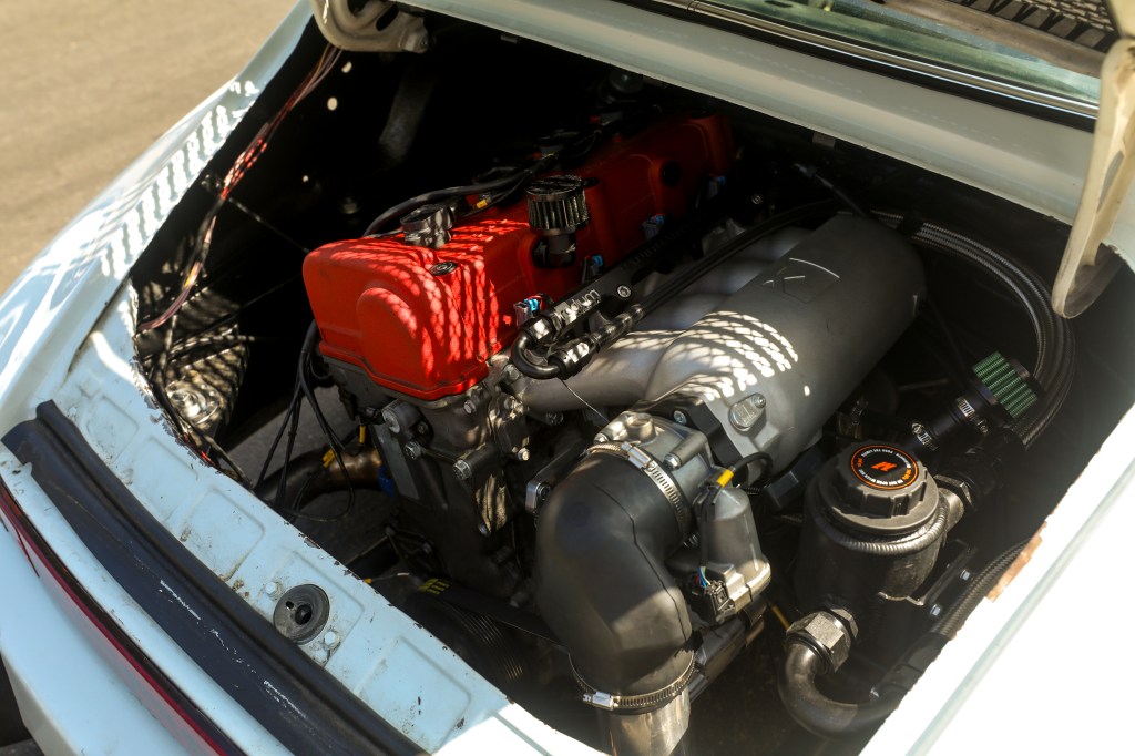 The technical challenges of this swap are fascinating. The K24’s inline configuration meant completely rethinking the engine bay packaging. Sebastien fabricated custom motor mounts that position the engine optimally for weight distribution while maintaining access to critical service points. The transmission adaptation required creating a bellhousing adapter that would mate the Honda engine to the Porsche gearbox, preserving the car’s original shifting characteristics while accepting the K24’s torque delivery.